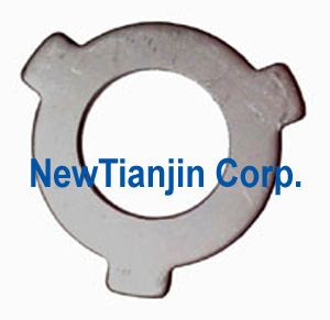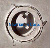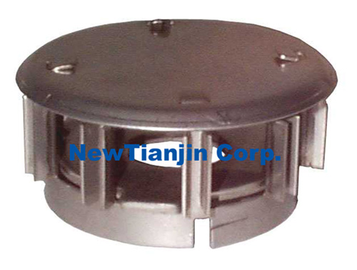 VFV浮阀塔板阀孔直径为50mm,主要由阀盖、阀片、阀笼组成,阀笼与塔板固定,阀片在阀笼内上下浮动,如下图所示。